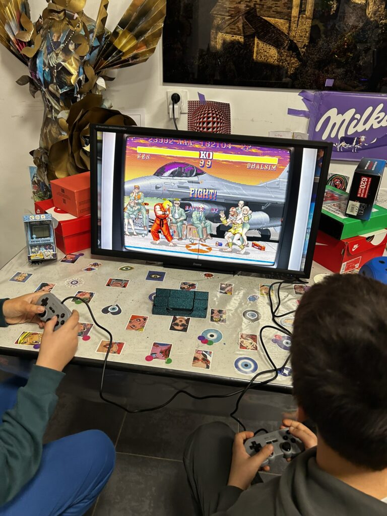 « Tu vois, quand j’avais ton âge, j’allais en cachette au bar du coin pour jouer à Space Invaders ou Street Fighter II… »